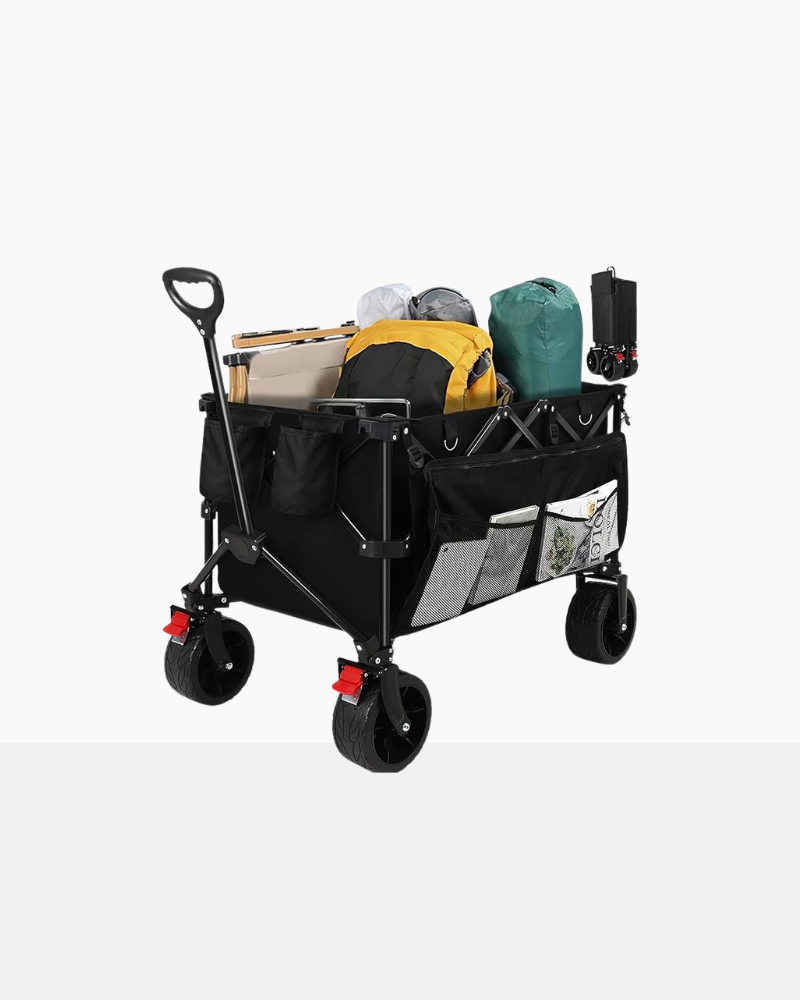• Durable Big All-Terrain Wheels: Equipped with durable larger all-terrain wheels featuring dual bearings, this wagon delivers smoother rolling and improved traction. The Large wheel size enhances mobility across grass, gravel, dirt, pavement, and firm sand, providing steady control and long-lasting durability.